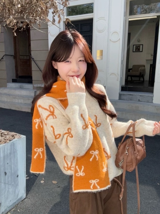 romierose 2025新作 マフラー付きリボンニット あざとい コア系 ブロークコア 純欲 セクシー 秋冬 オシャレ モテ服 デート服 女子力 y2kファッション ワンホン服 rr25112301