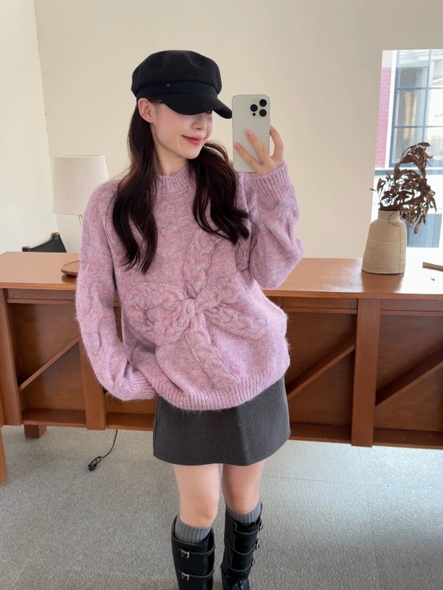 romierose 2025新作 リボンモチーフニット あざとい コア系 ブロークコア 純欲 セクシー 秋冬 オシャレ モテ服 デート服 女子力 y2kファッション ワンホン服 rr25110701