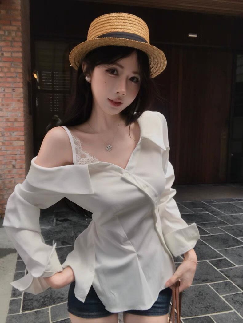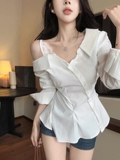 romierose 2025新作 アシメトリーシャツ あざとい コア系 ブロークコア 純欲 セクシー 春夏服 オシャレ モテ服 デート服 女子力 y2kファッション ワンホン服 rr25041101