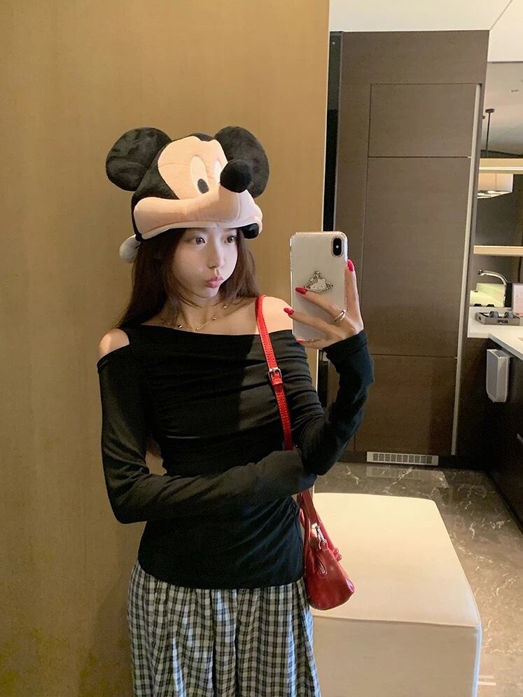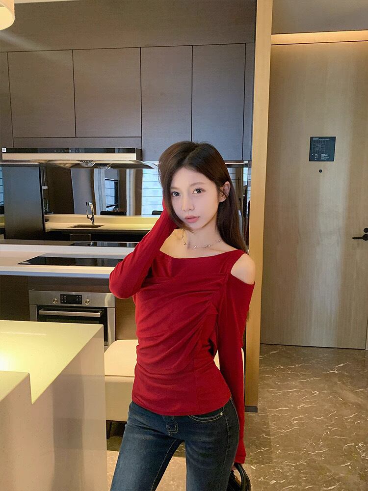 romierose 2025新作 秋トップス シャーリングカットソー あざとい コア系 ブロークコア 純欲 セクシー 秋冬 オシャレ モテ服 デート服 女子力 y2kファッション ワンホン服 rr25092501