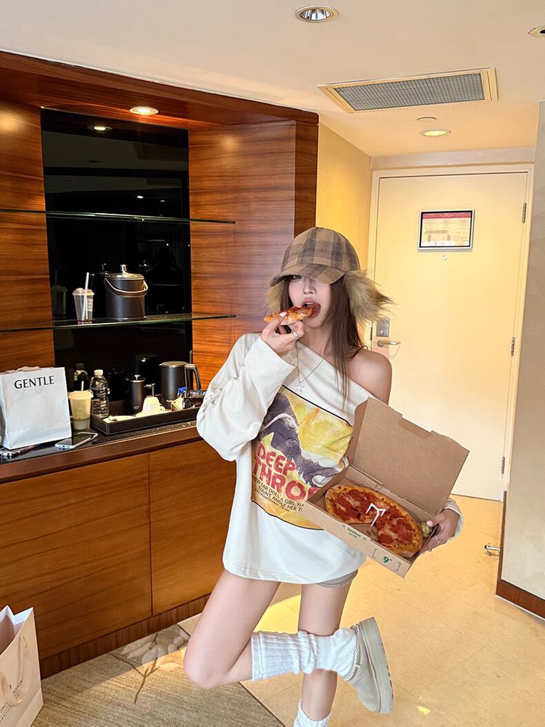 romierose 2025新作 秋トップス オフショルトレーナー あざとい コア系 ブロークコア 純欲 セクシー 秋冬 オシャレ モテ服 デート服 女子力 y2kファッション ワンホン服 rr25100201