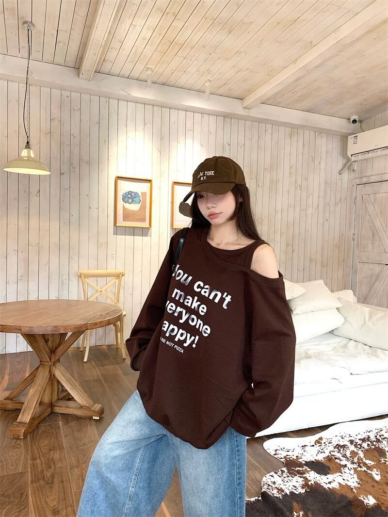 romierose 2025新作 秋オフショルトレーナー あざとい コア系 ブロークコア 純欲 セクシー 秋冬 オシャレ モテ服 デート服 女子力 y2kファッション ワンホン服 rr25101201