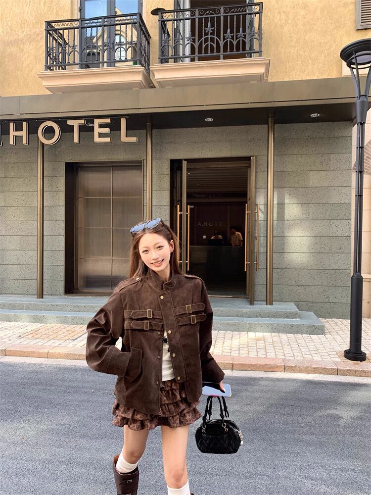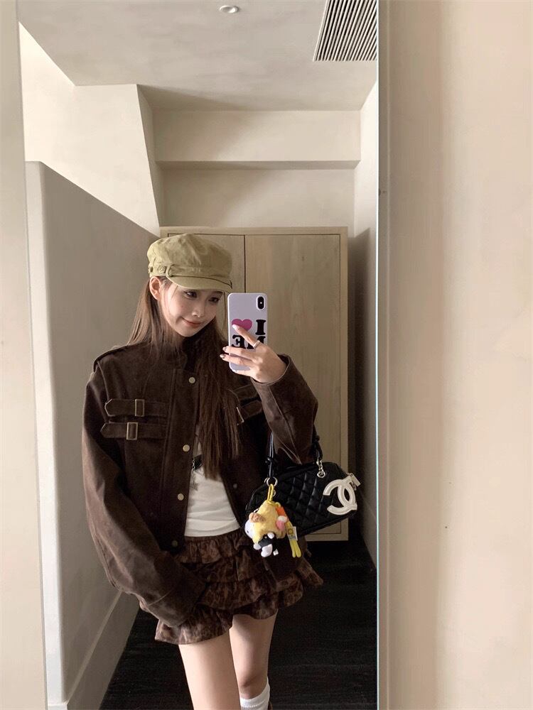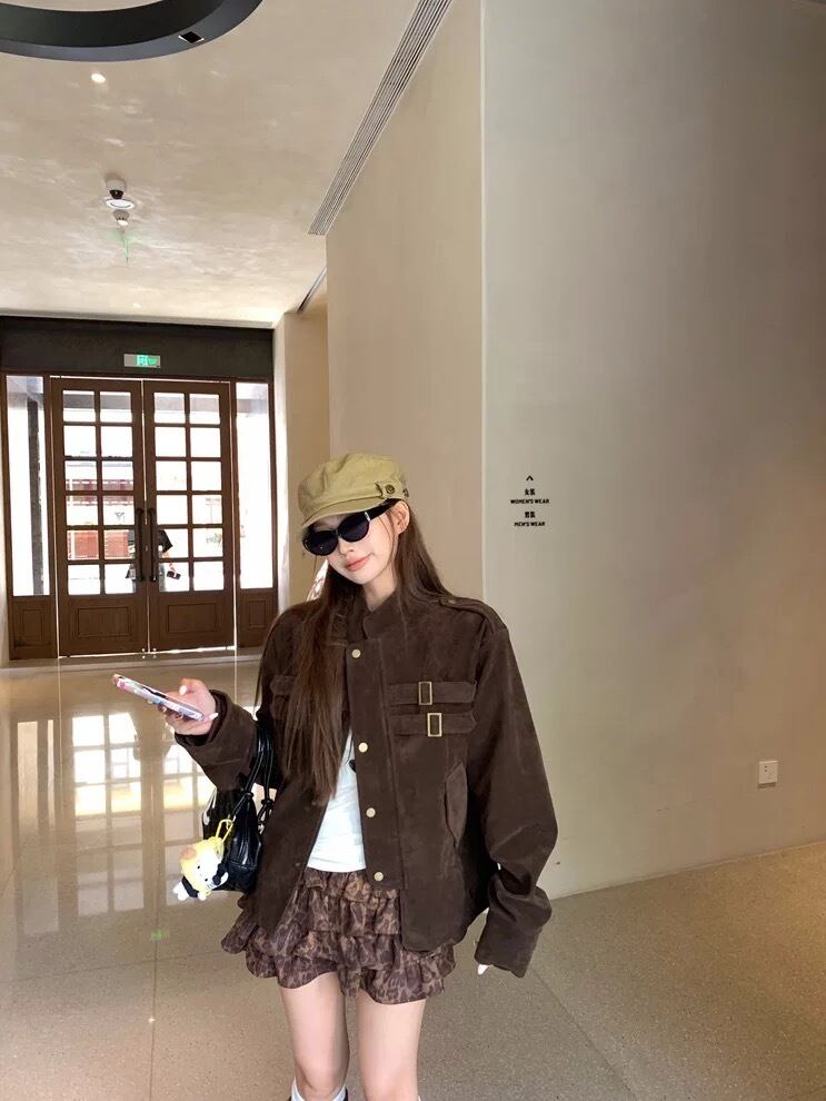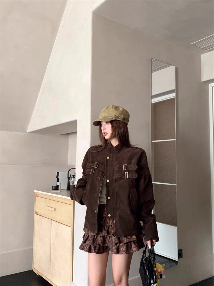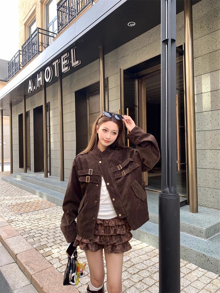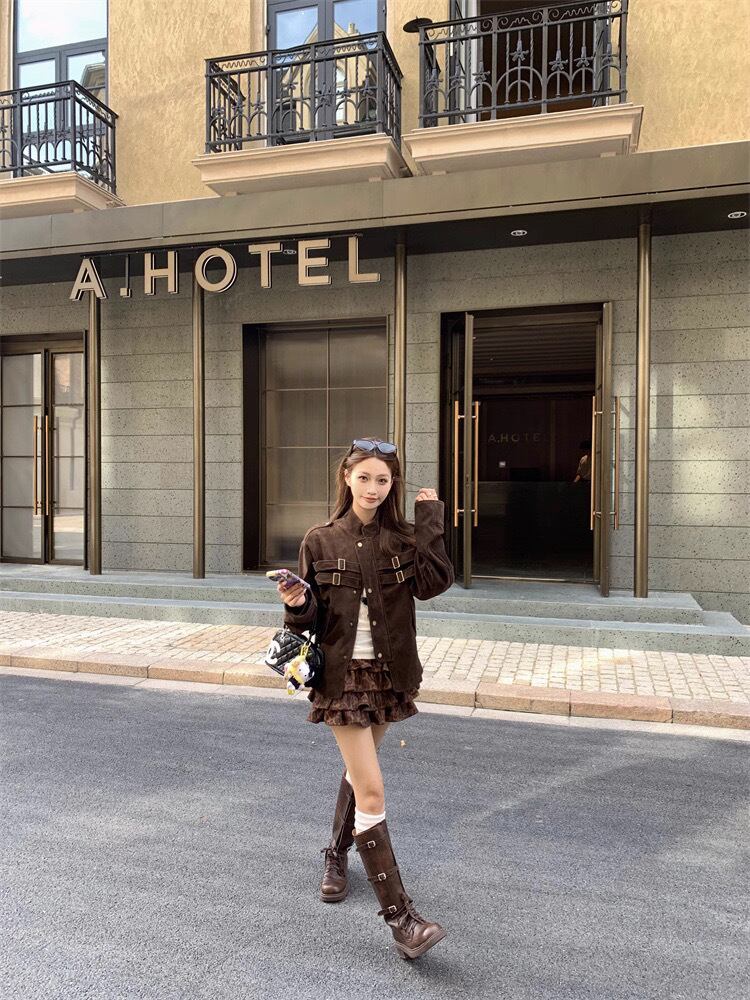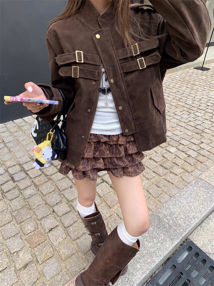 romierose 2025新作 スエードジャケット あざとい コア系 ブロークコア 純欲 セクシー 秋冬 オシャレ モテ服 デート服 女子力 y2kファッション ワンホン服 rr25102401