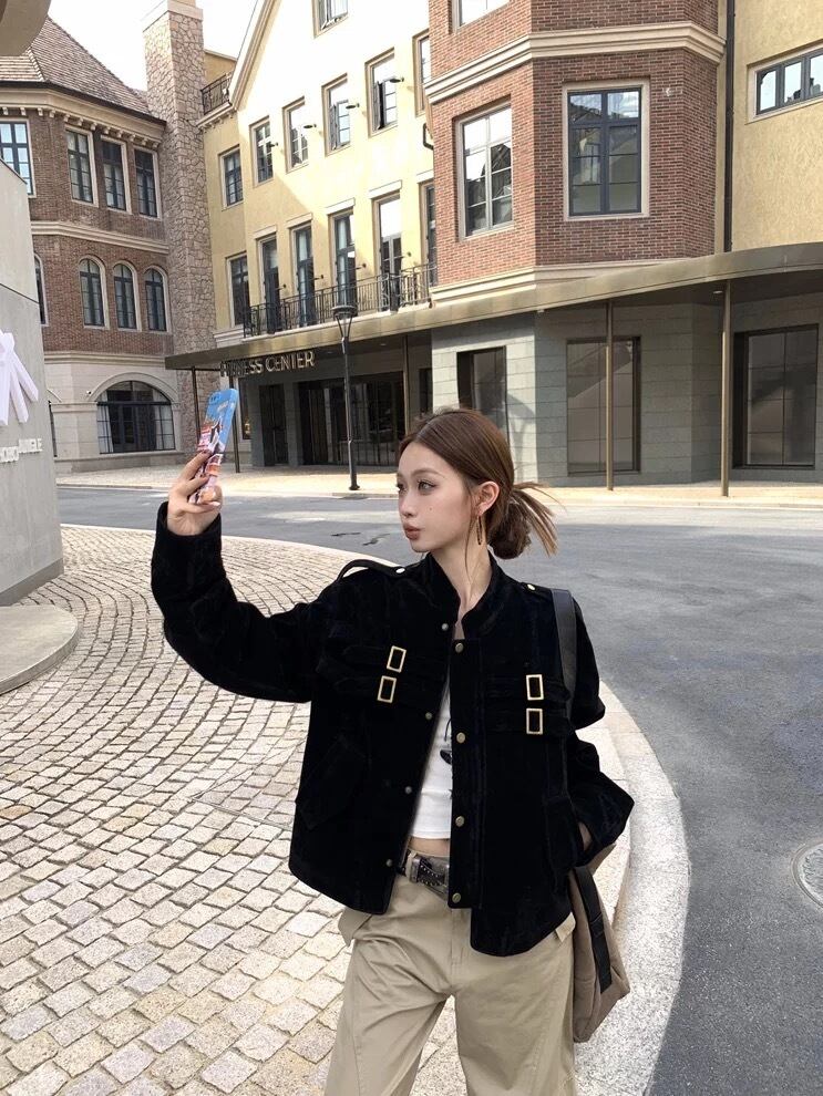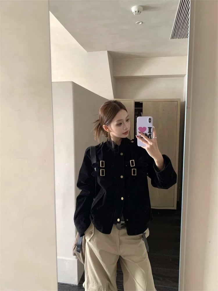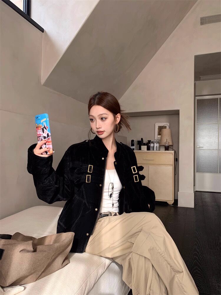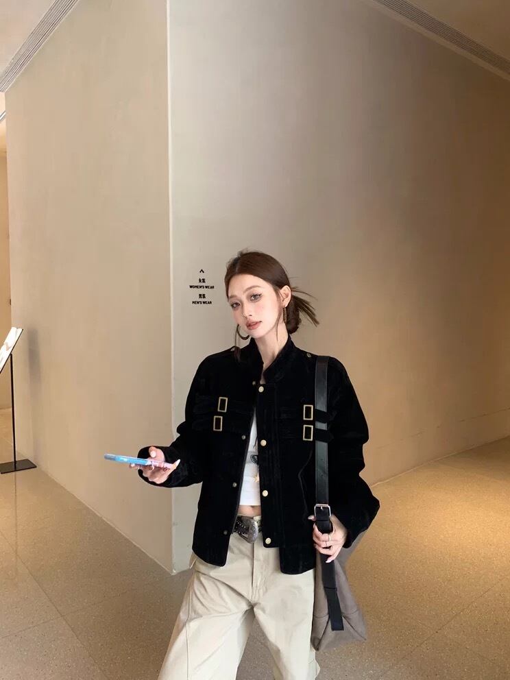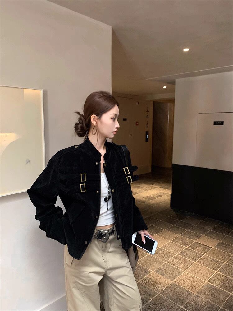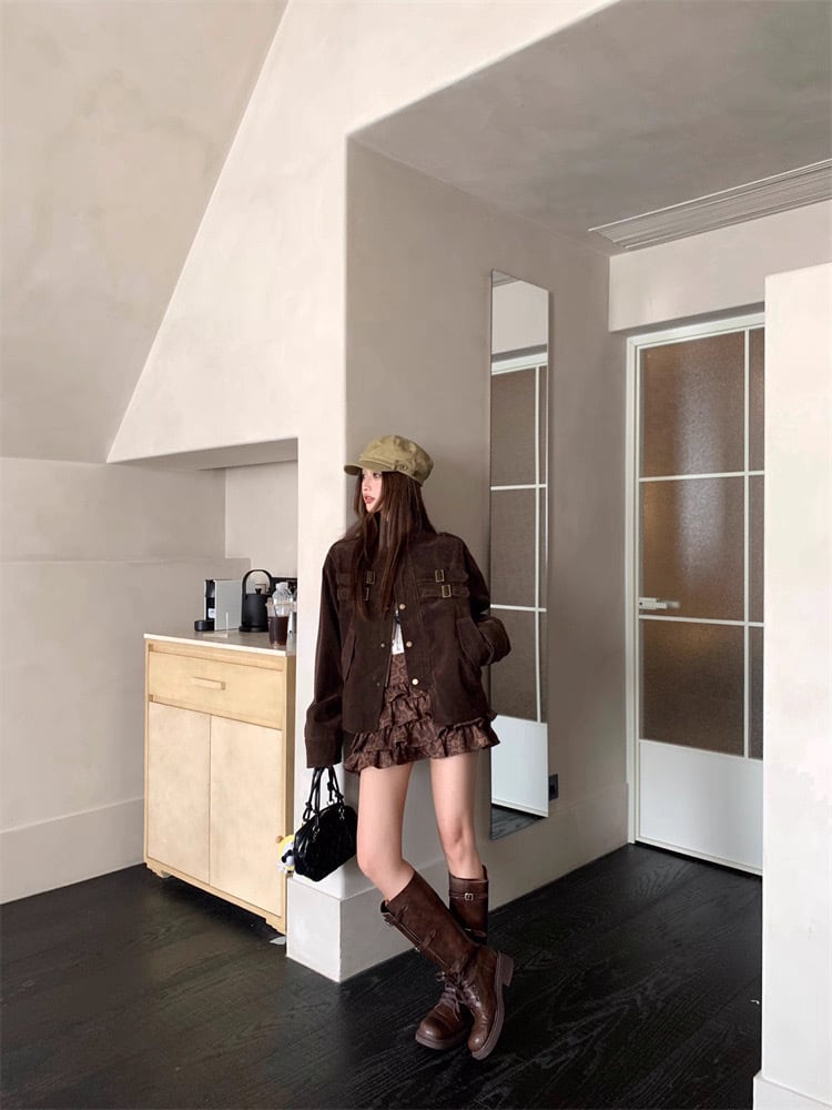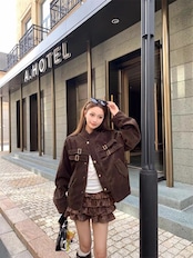 romierose 2025新作 スエードジャケット あざとい コア系 ブロークコア 純欲 セクシー 秋冬 オシャレ モテ服 デート服 女子力 y2kファッション ワンホン服 rr25102401