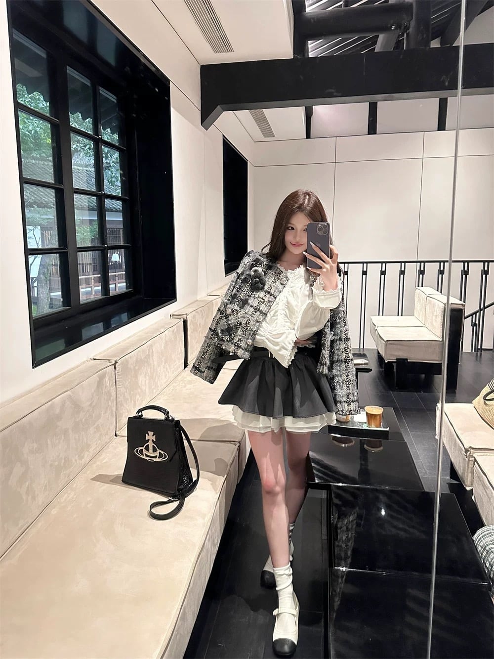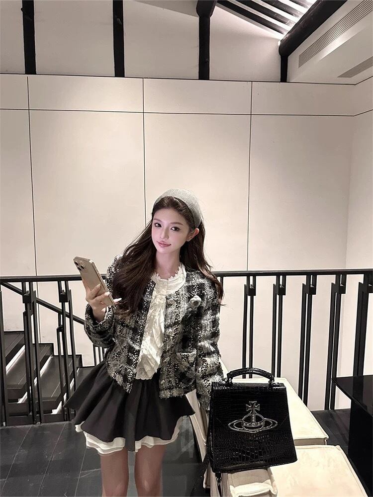 romierose 2025新作 ツイードジャケット あざとい コア系 ブロークコア 純欲 セクシー 秋冬 オシャレ モテ服 デート服 女子力 y2kファッション ワンホン服 rr25102701