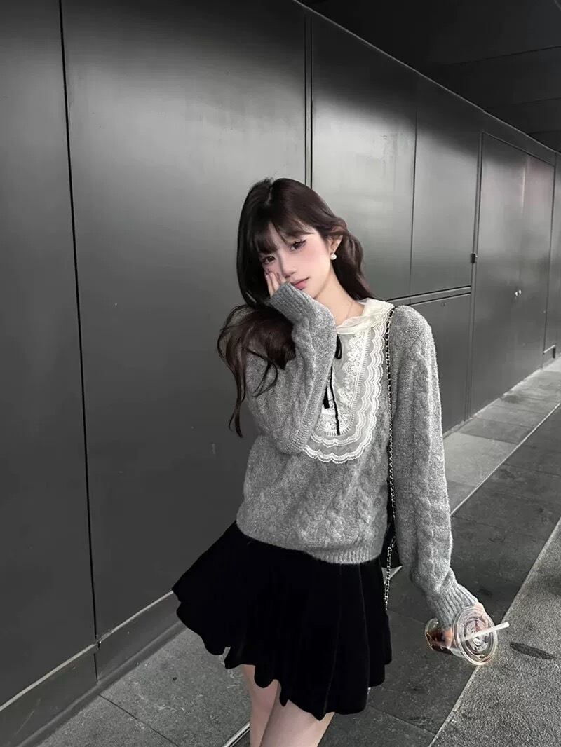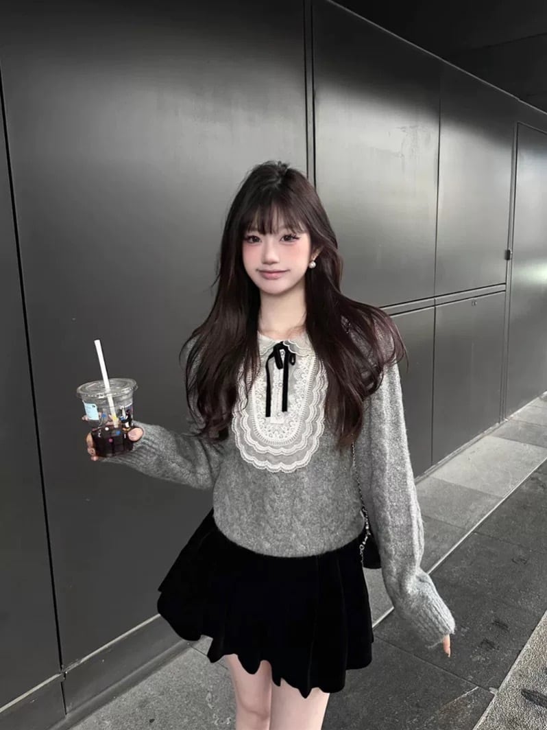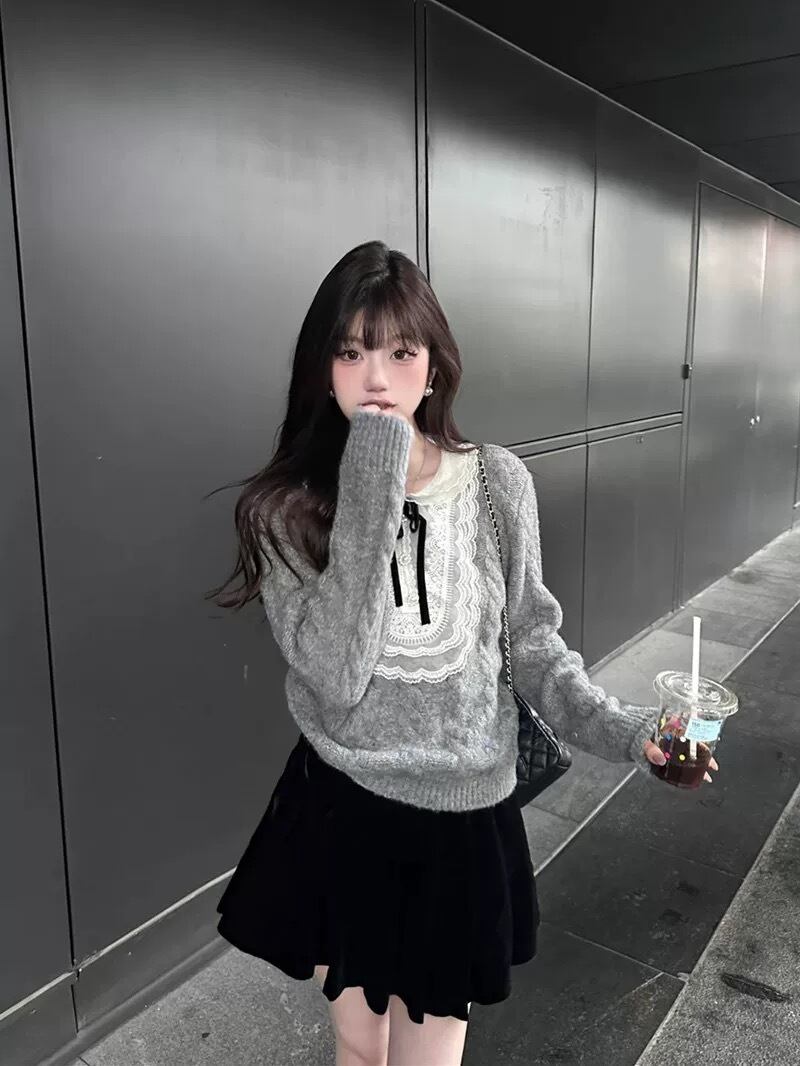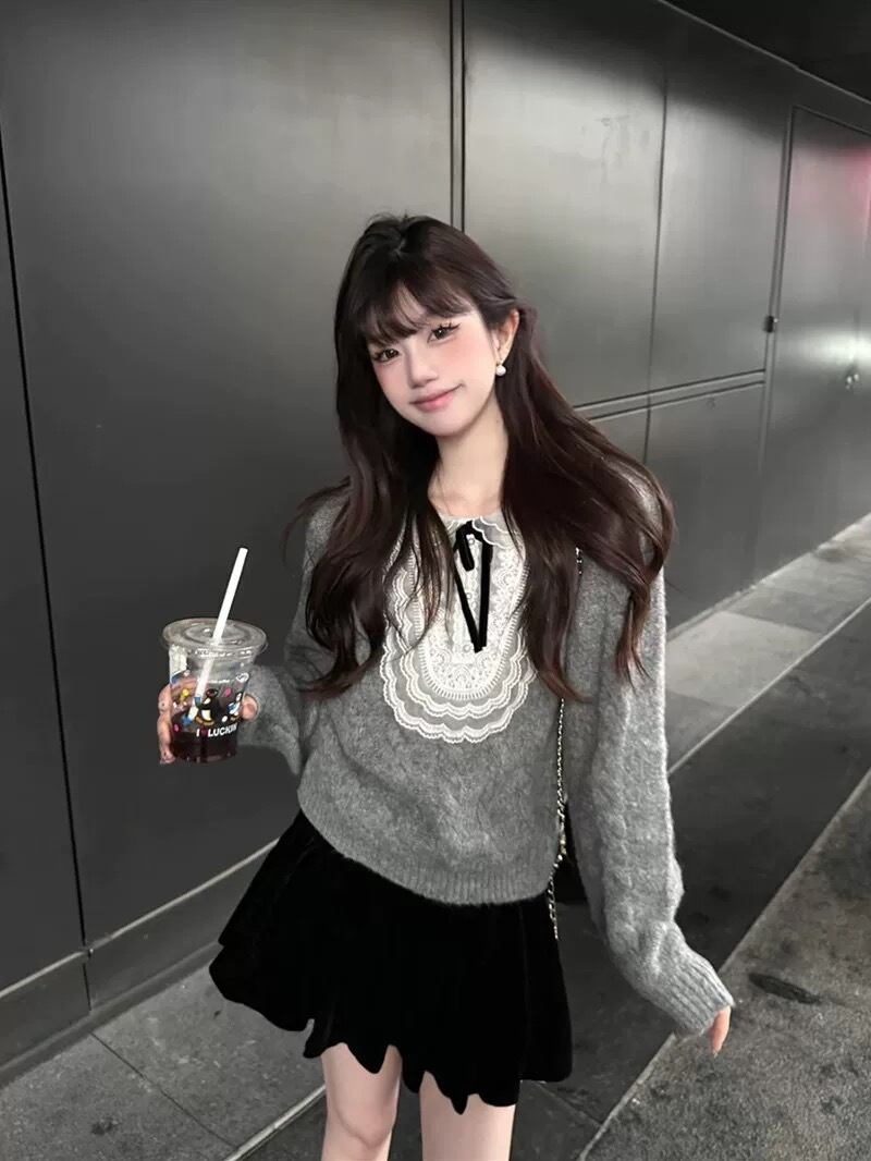 romierose 2025新作 レースニット あざとい コア系 ブロークコア 純欲 セクシー 秋冬 オシャレ モテ服 デート服 女子力 y2kファッション ワンホン服 rr25103101