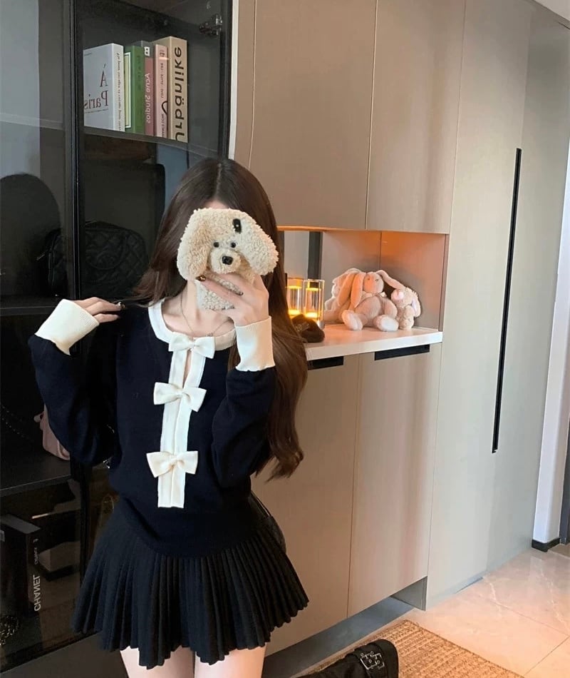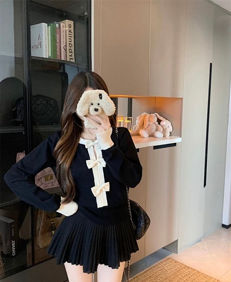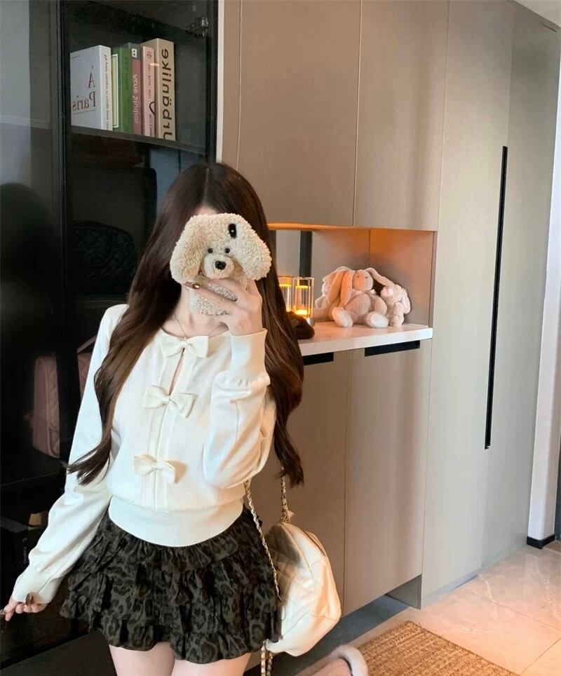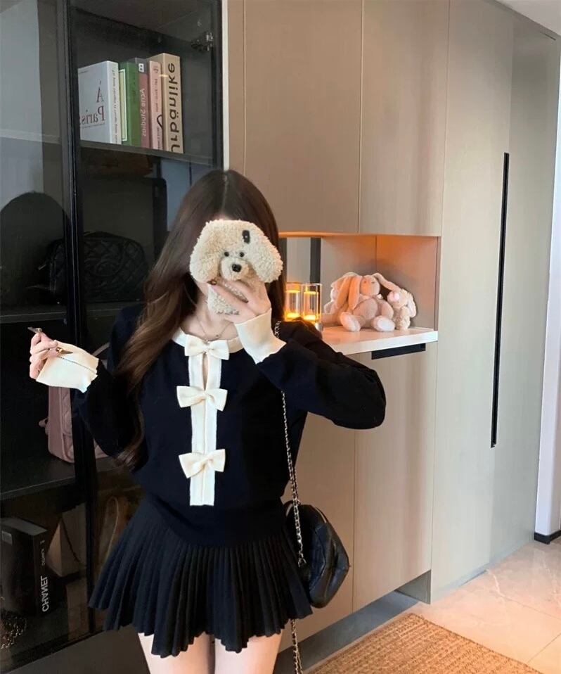romierose 2025新作 リボンカットソー あざとい コア系 ブロークコア 純欲 セクシー 秋冬 オシャレ モテ服 デート服 女子力 y2kファッション ワンホン服 rr25110101