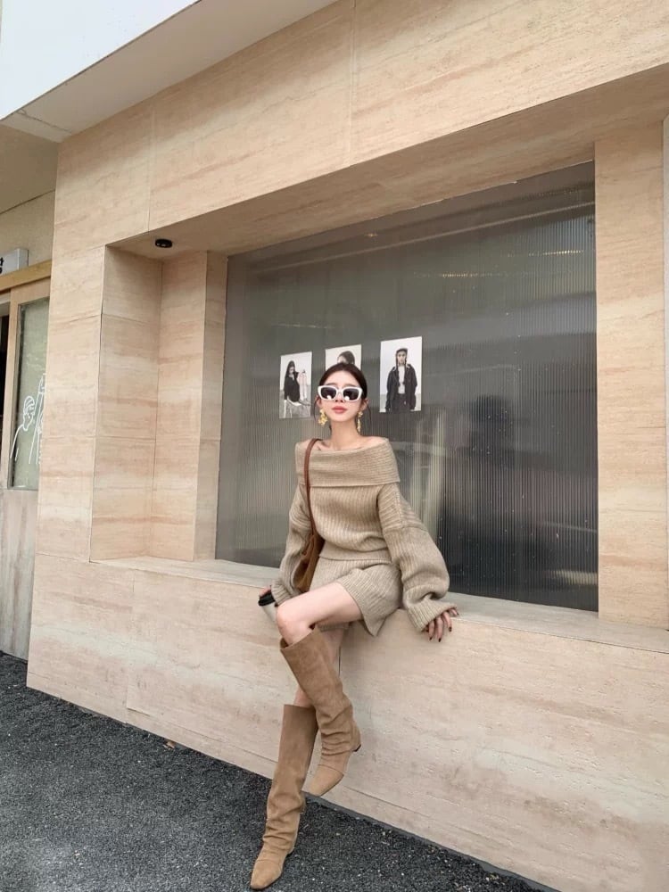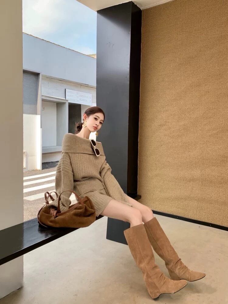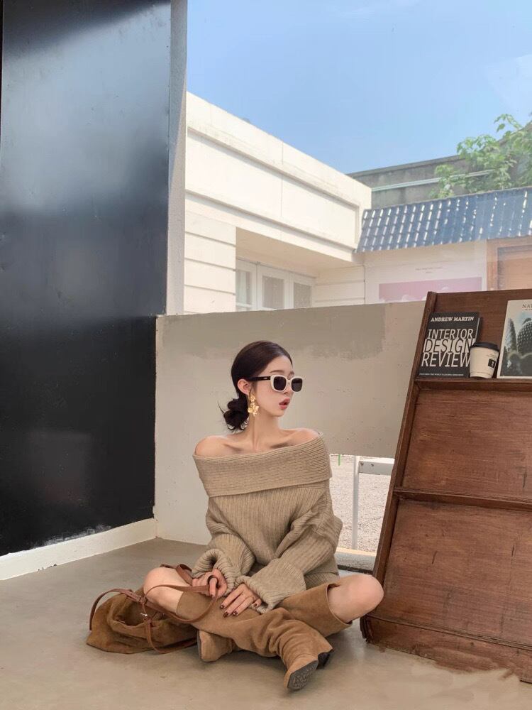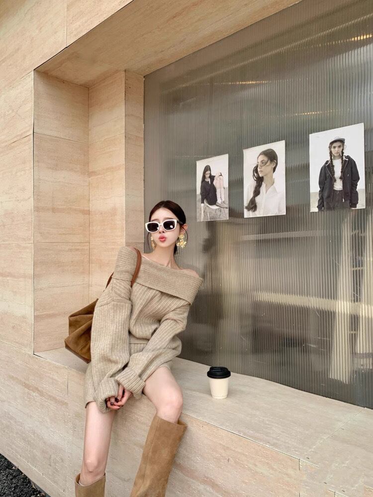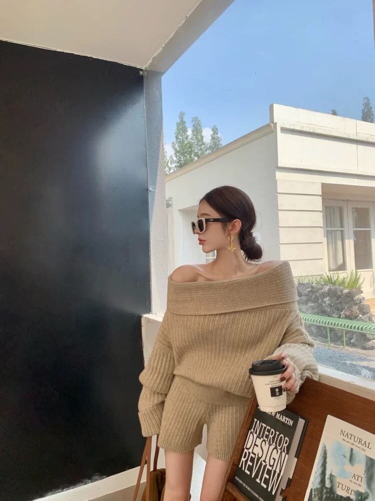 romierose 2025新作 オフショルダーニット+ニットパンツ あざとい コア系 ブロークコア 純欲 セクシー 秋冬 オシャレ モテ服 デート服 女子力 y2kファッション ワンホン服 rr25110301