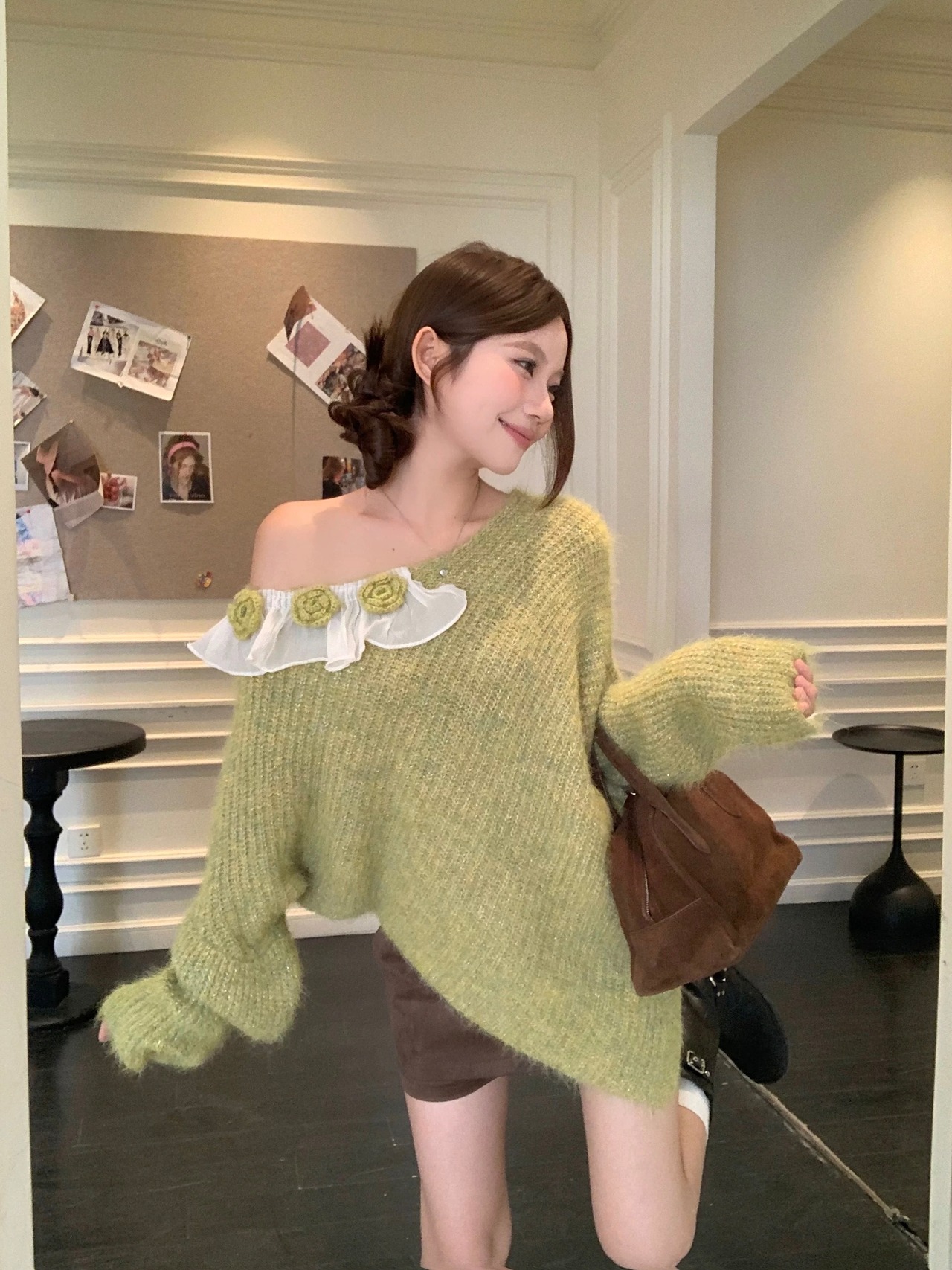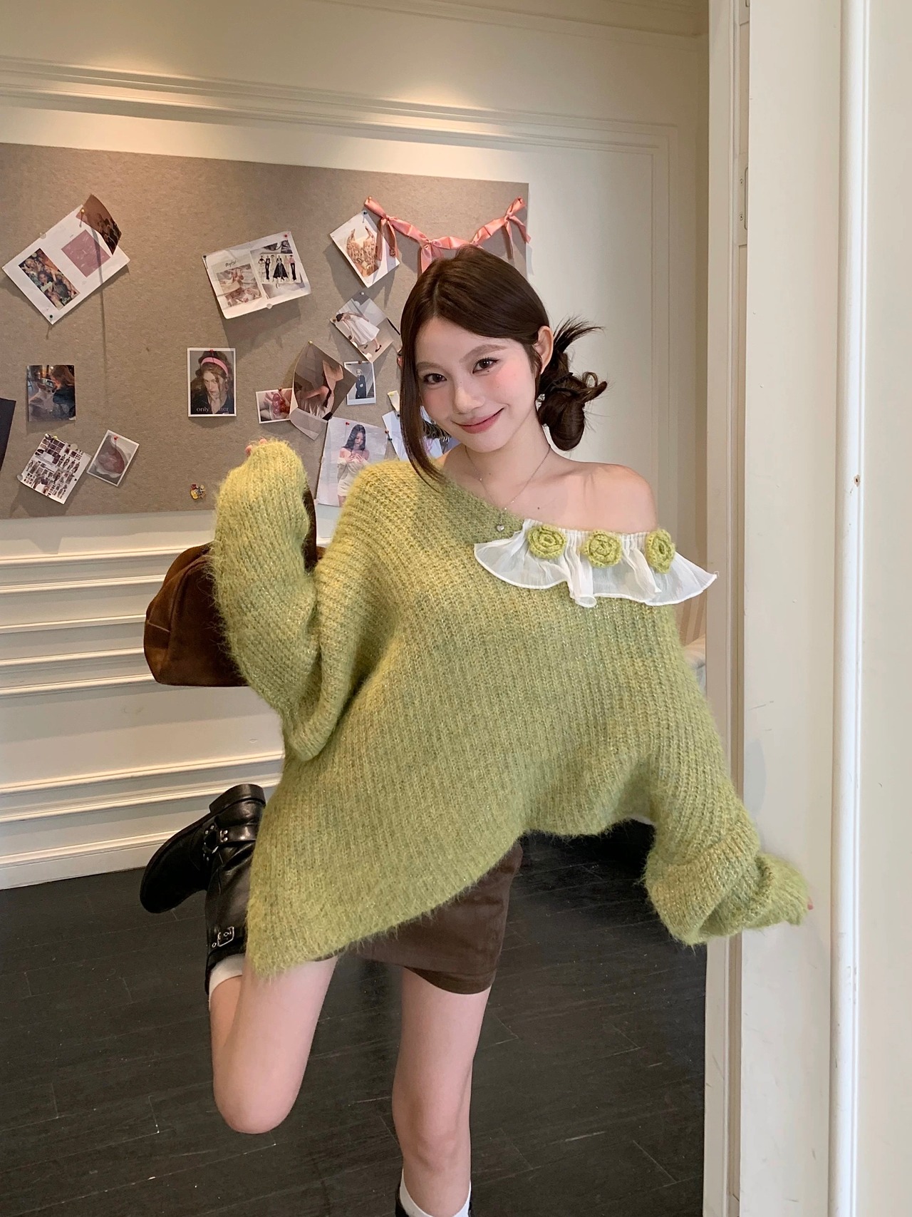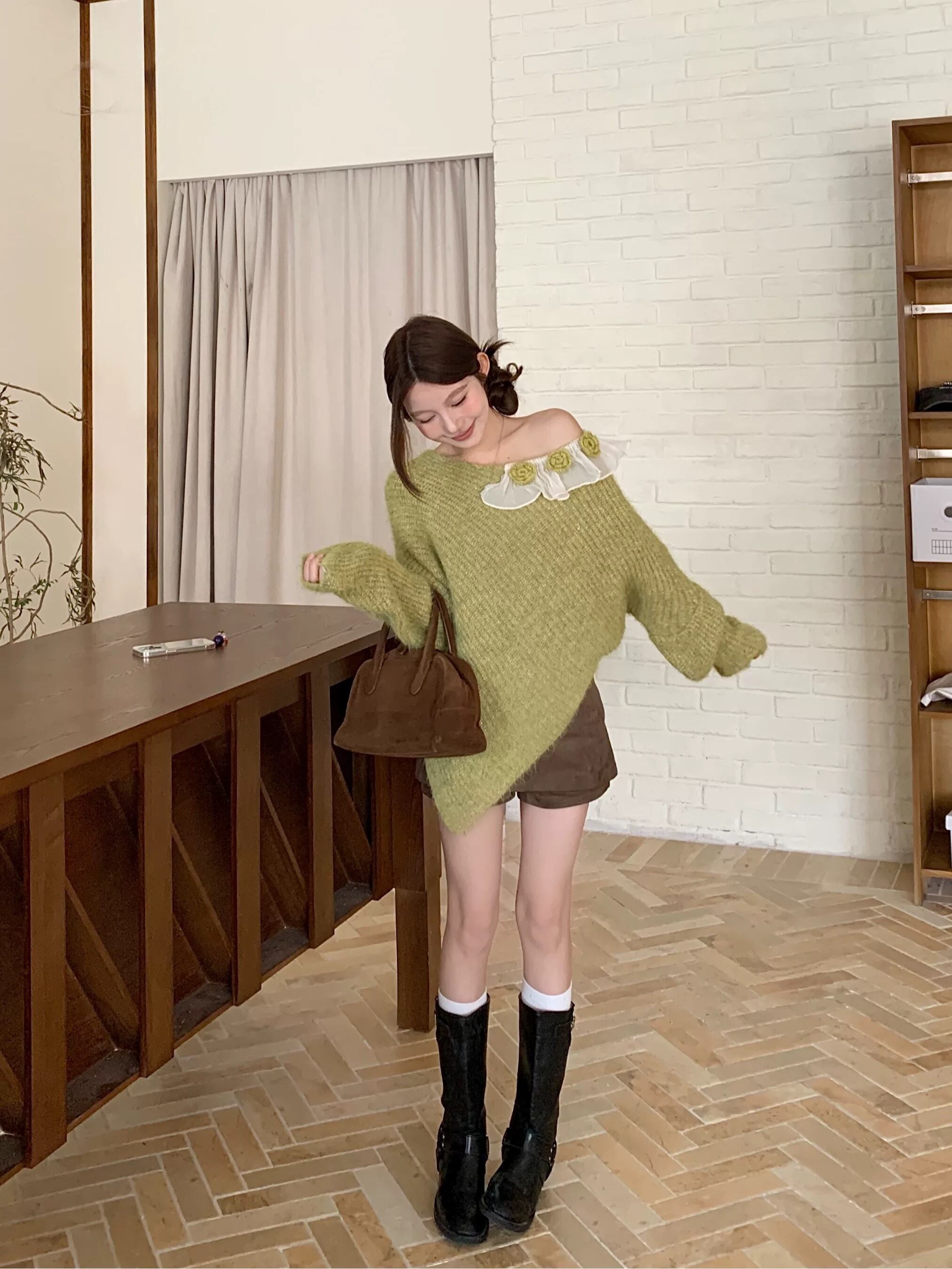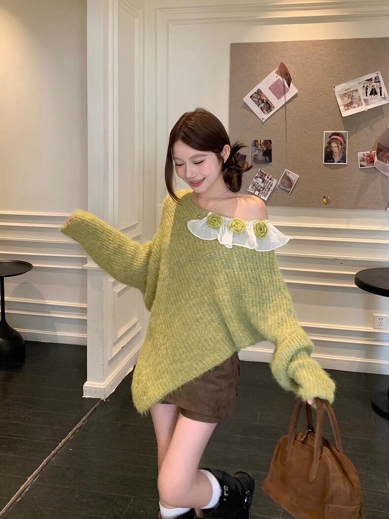 romierose 2025新作 アシメトリー薔薇モチーフニット あざとい コア系 ブロークコア 純欲 セクシー 秋冬 オシャレ モテ服 デート服 女子力 y2kファッション ワンホン服 rr25110601