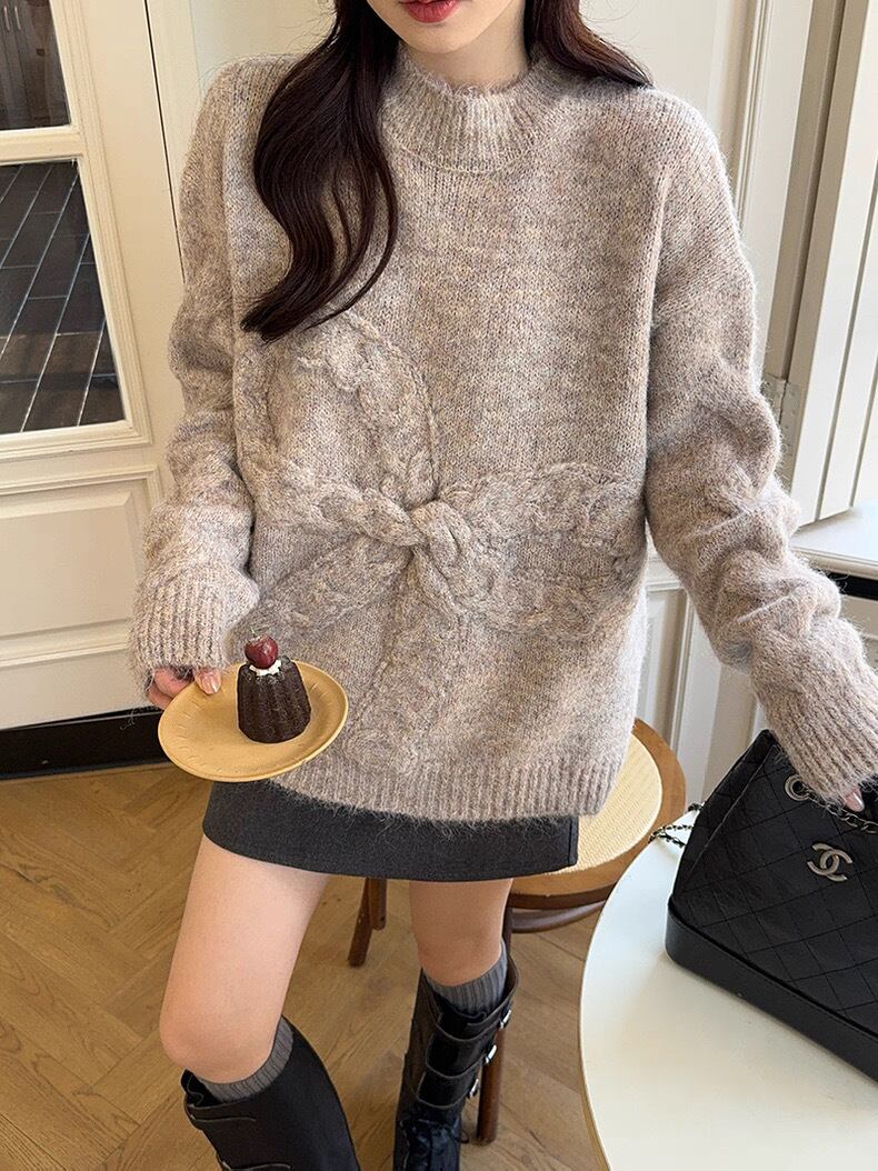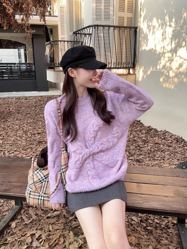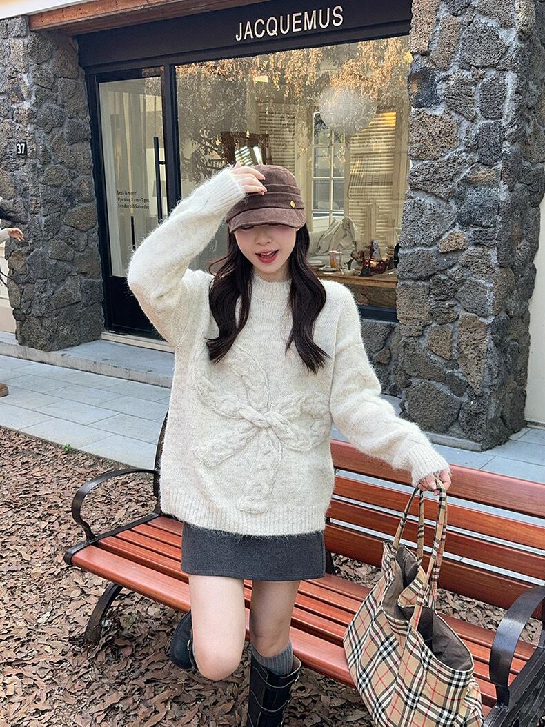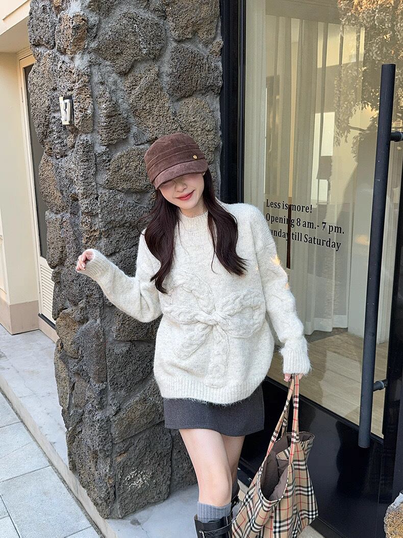 romierose 2025新作 リボンモチーフニット あざとい コア系 ブロークコア 純欲 セクシー 秋冬 オシャレ モテ服 デート服 女子力 y2kファッション ワンホン服 rr25110701