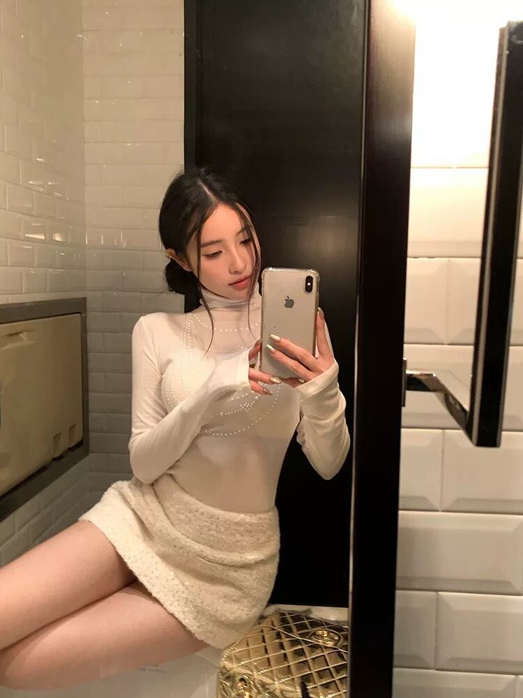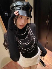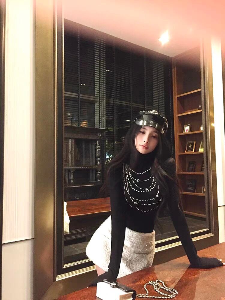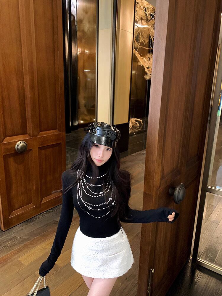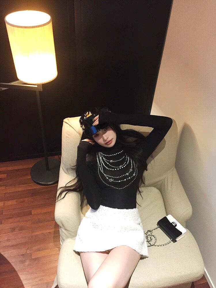 romierose 2025新作 アクセサリー風ハイネックトップス あざとい コア系 ブロークコア 純欲 セクシー 秋冬 オシャレ モテ服 デート服 女子力 y2kファッション ワンホン服 rr25111801