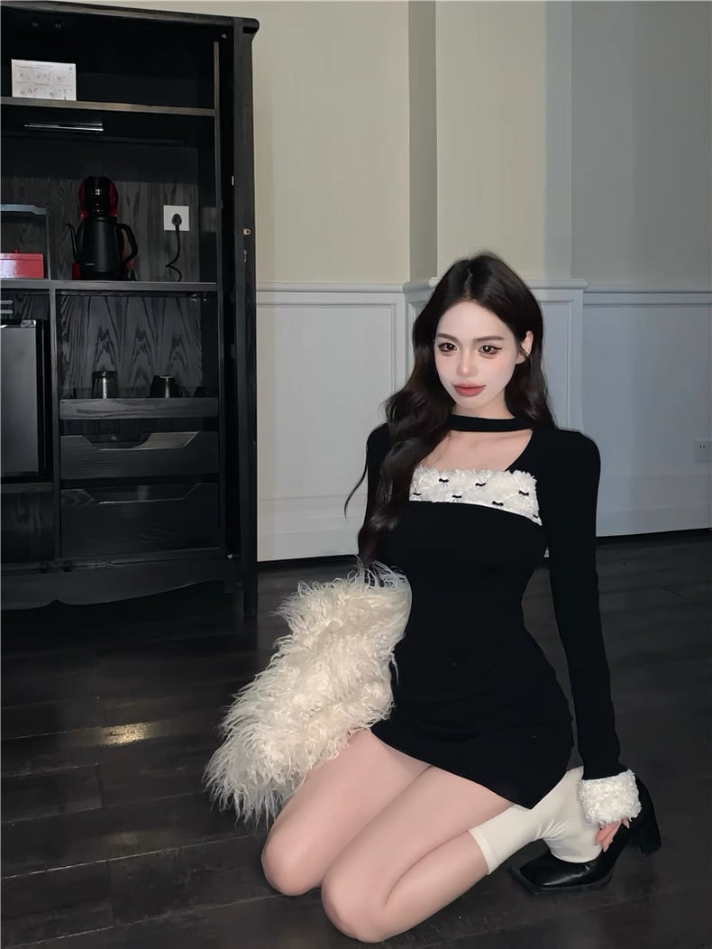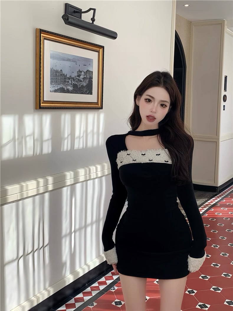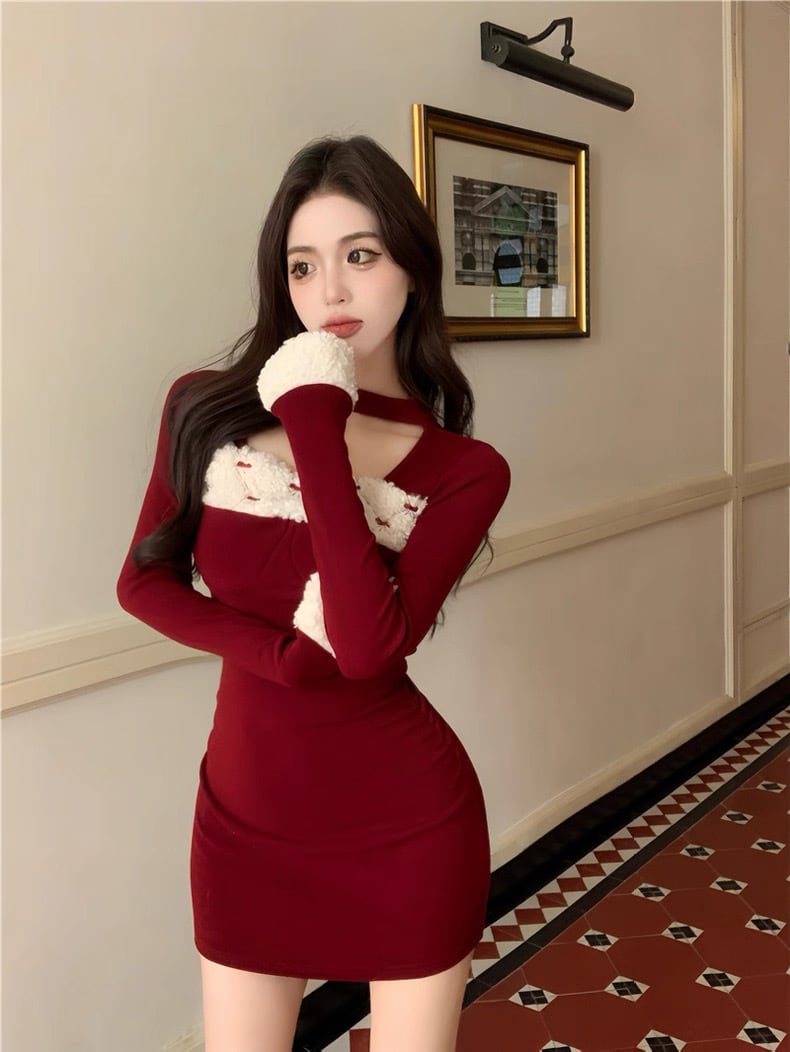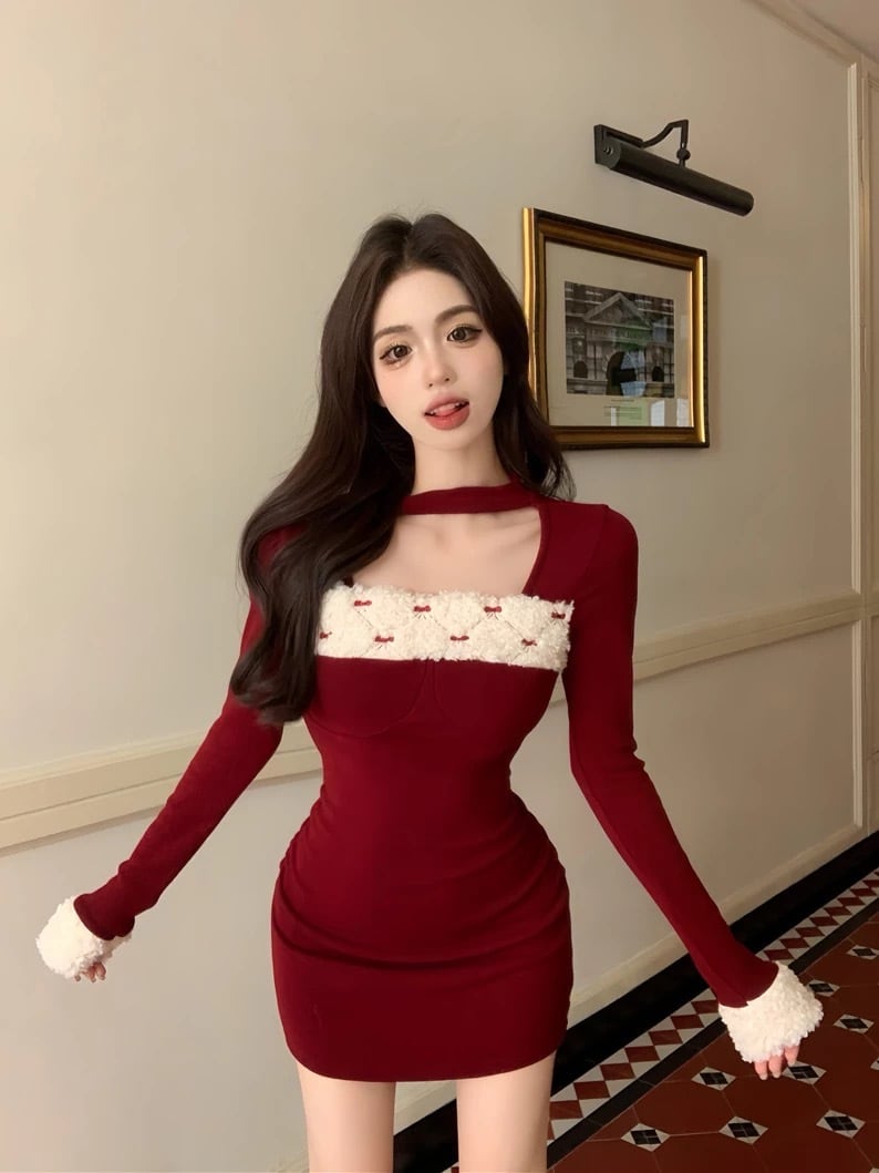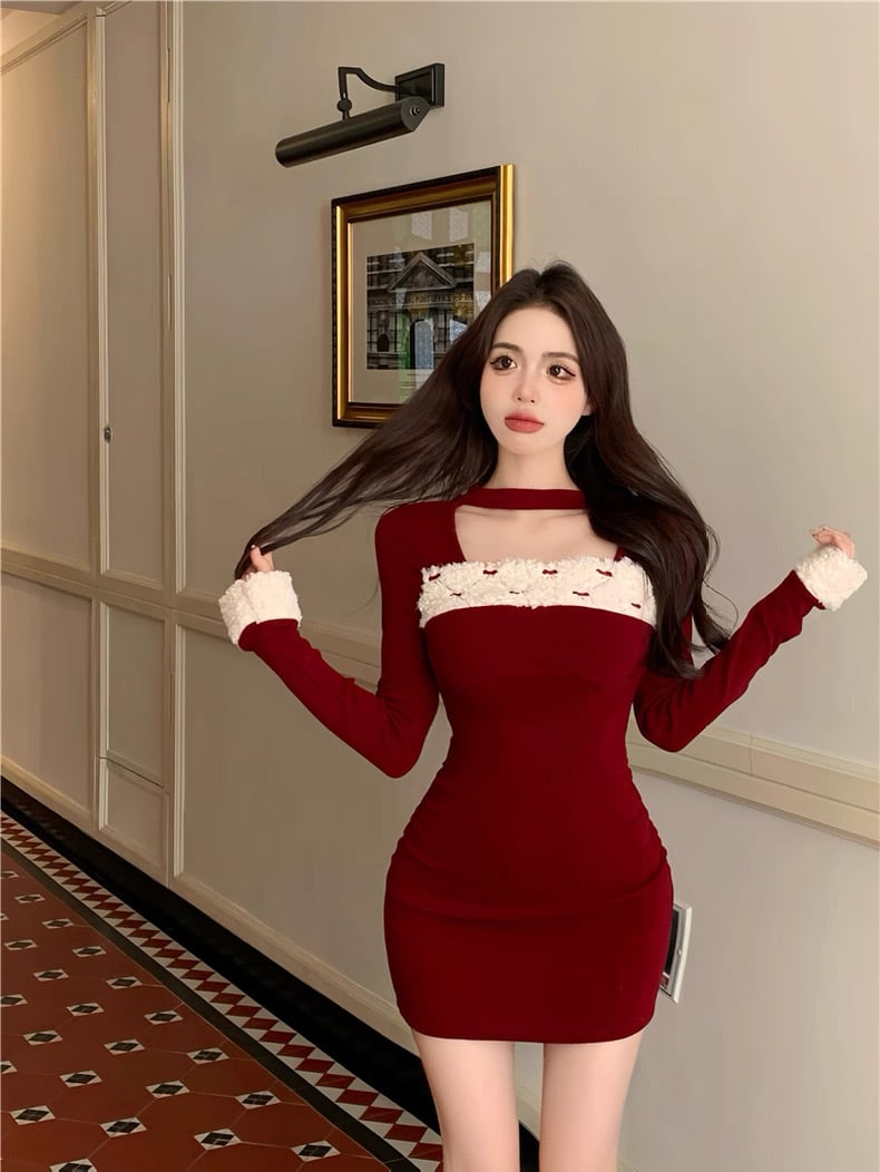 romierose 2025新作 リボンファーミニワンピース あざとい コア系 ブロークコア 純欲 セクシー 秋冬 オシャレ モテ服 デート服 女子力 y2kファッション ワンホン服 rr25120401