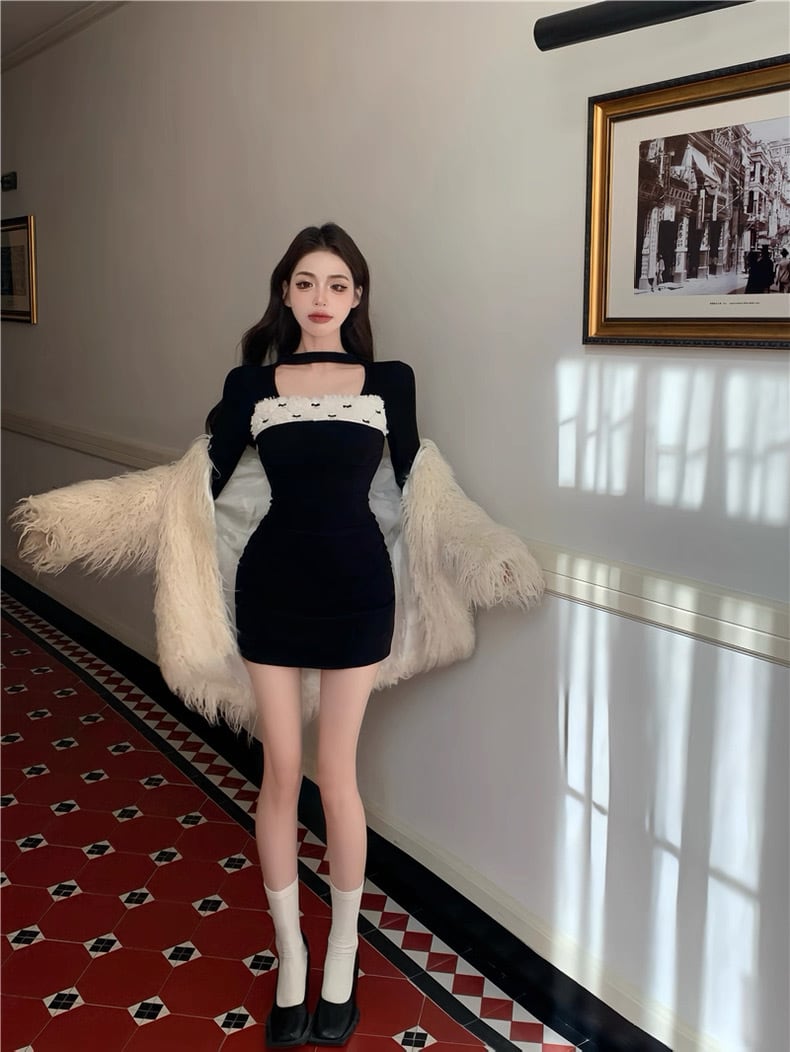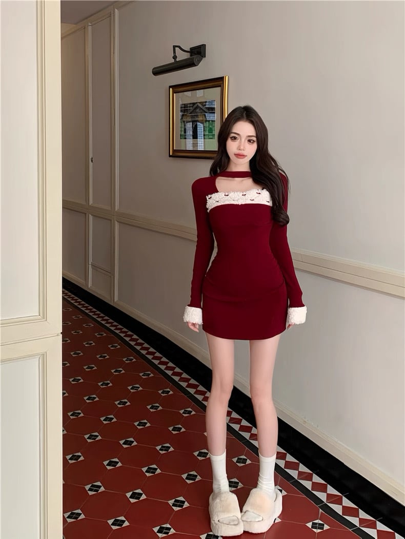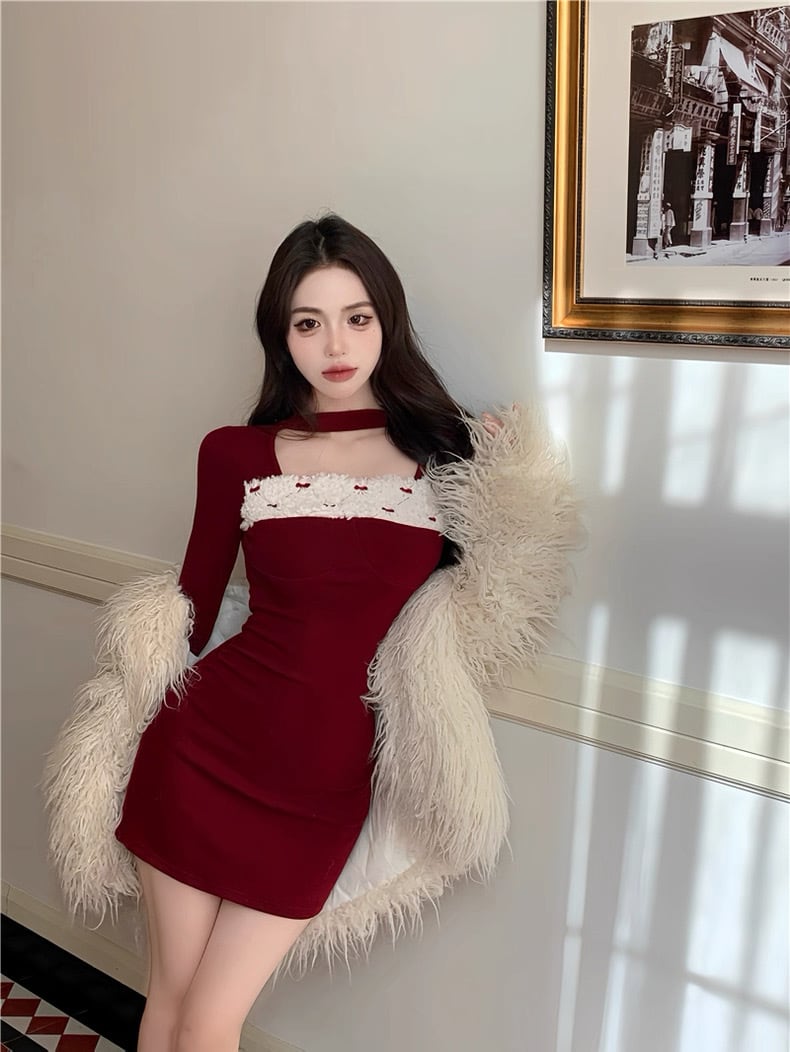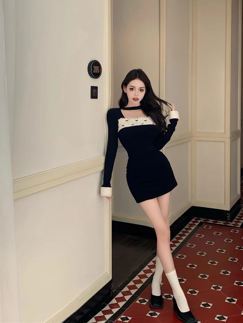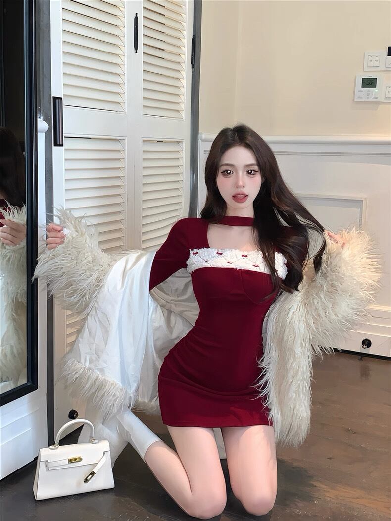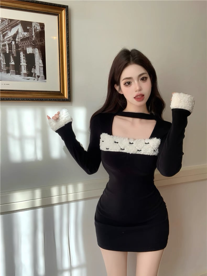 romierose 2025新作 リボンファーミニワンピース あざとい コア系 ブロークコア 純欲 セクシー 秋冬 オシャレ モテ服 デート服 女子力 y2kファッション ワンホン服 rr25120401