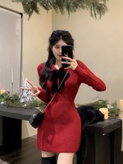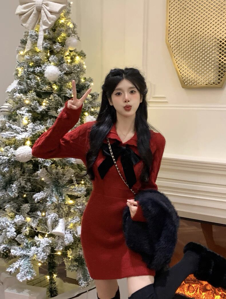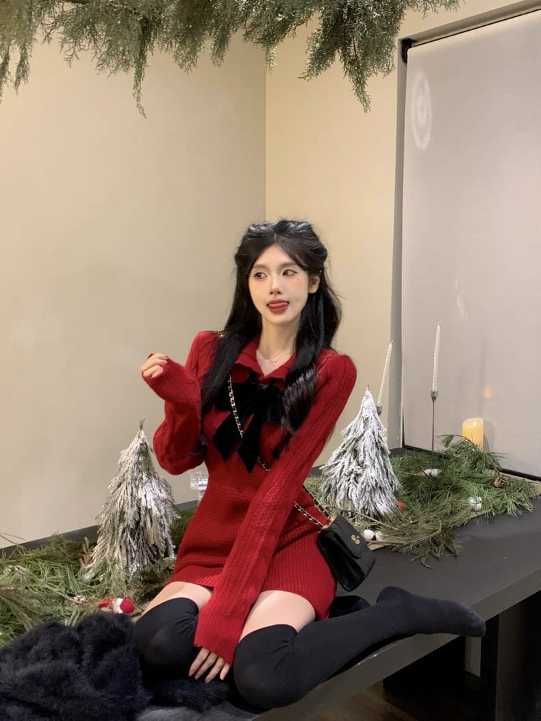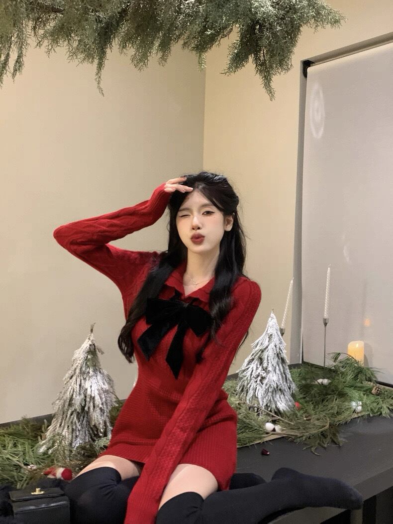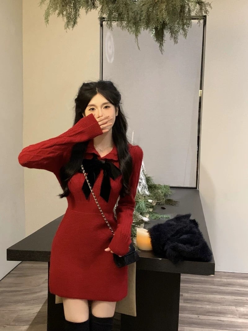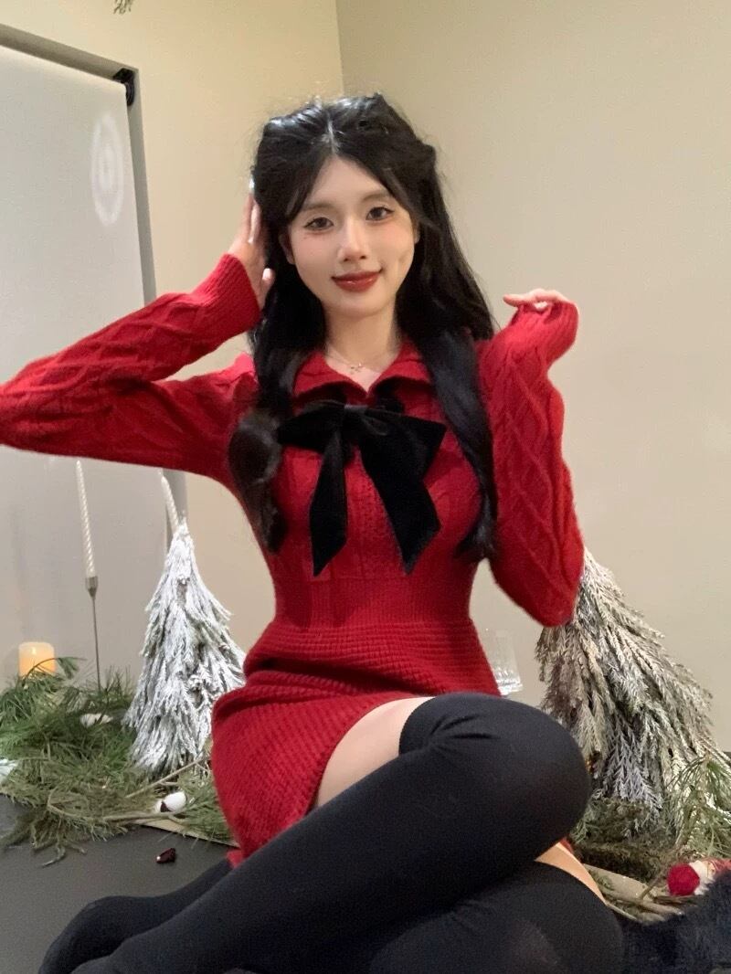 romierose 2025新作 編みリボンミニワンピース あざとい コア系 ブロークコア 純欲 セクシー 秋冬 オシャレ モテ服 デート服 女子力 y2kファッション ワンホン服 rr25120501
