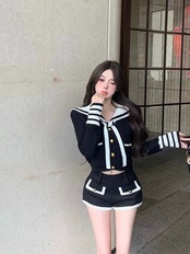 romierose 2024新作 セーラー襟カーディガン セットアップ 純欲 セクシー 春服 オシャレ モテ服 デート服 女子力 rr24020601