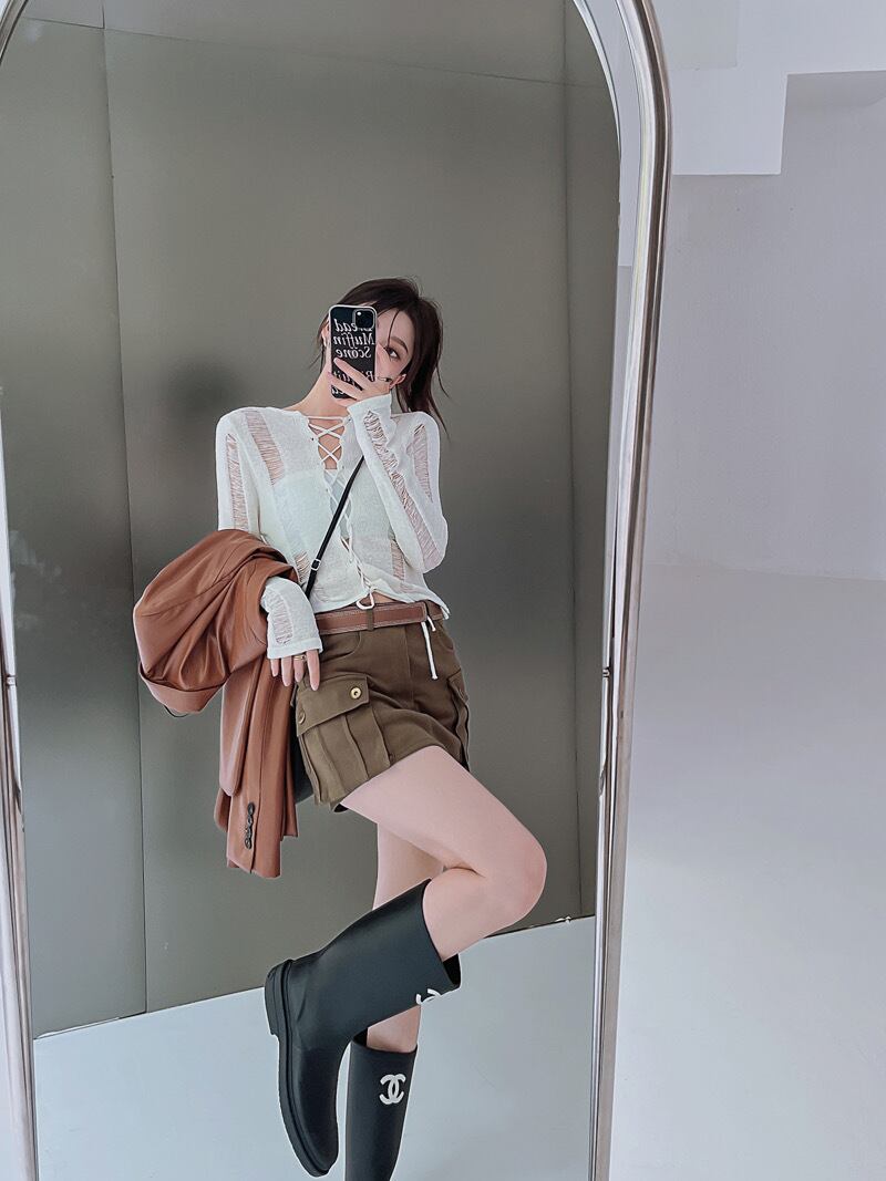 romierose 2024新作 前後2way編みニットレースアップトップス コア系 ブロークコア 純欲 セクシー 春服 オシャレ モテ服 デート服 女子力 ワンホン服 rr24053102