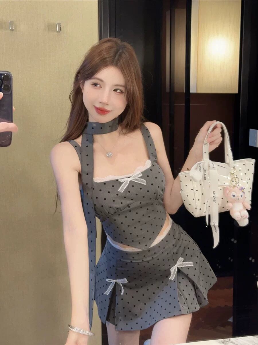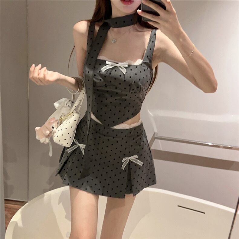 romierose 2024新作 インパン付きドットリボンスカート オシャレ セットアップ コア系 ブロークコア オーバーサイズ Tシャツ 純欲 セクシー 春服 オシャレ モテ服 デート服 女子力 y2kファッション ワンホン服 rr24072902