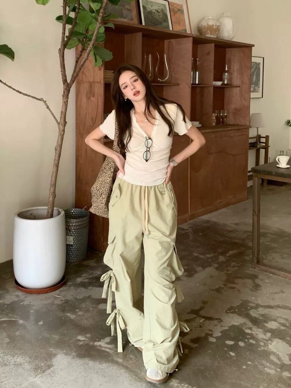romierose 2024新作 ワークポケットリボンワイドパンツ 女子力 純欲 セクシー 春服 オシャレ モテ服 デート服 女子力 秋服 ワンホン服 rr24081601