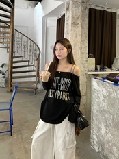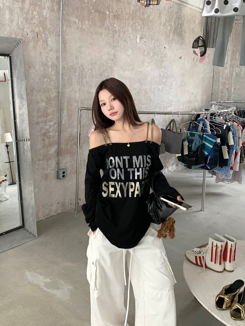 romierose 2024新作 肩紐チェーンオフショルダー長袖スウェット 女子力 純欲 セクシー 秋服 オシャレ モテ服 デート服 女子力 ワンホン服 rr24082701